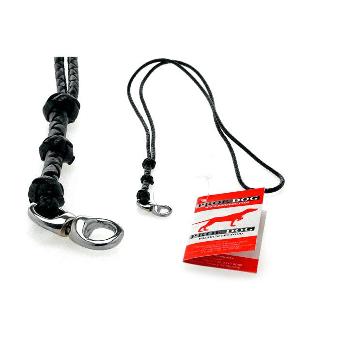 Flot og praktisk fløjtesnor i sort flettet læder fra Prof. Dog